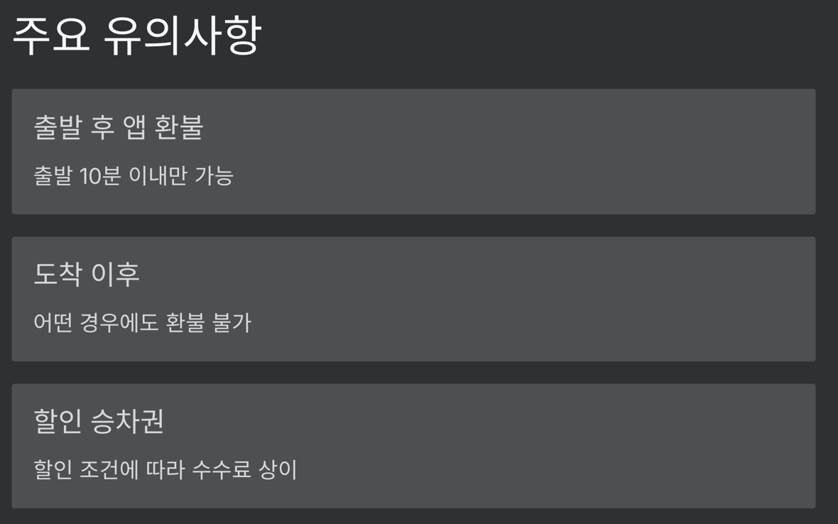 - 출발 후에는 앱 환불 불가 (단, 출발 10분 이내 예외)
