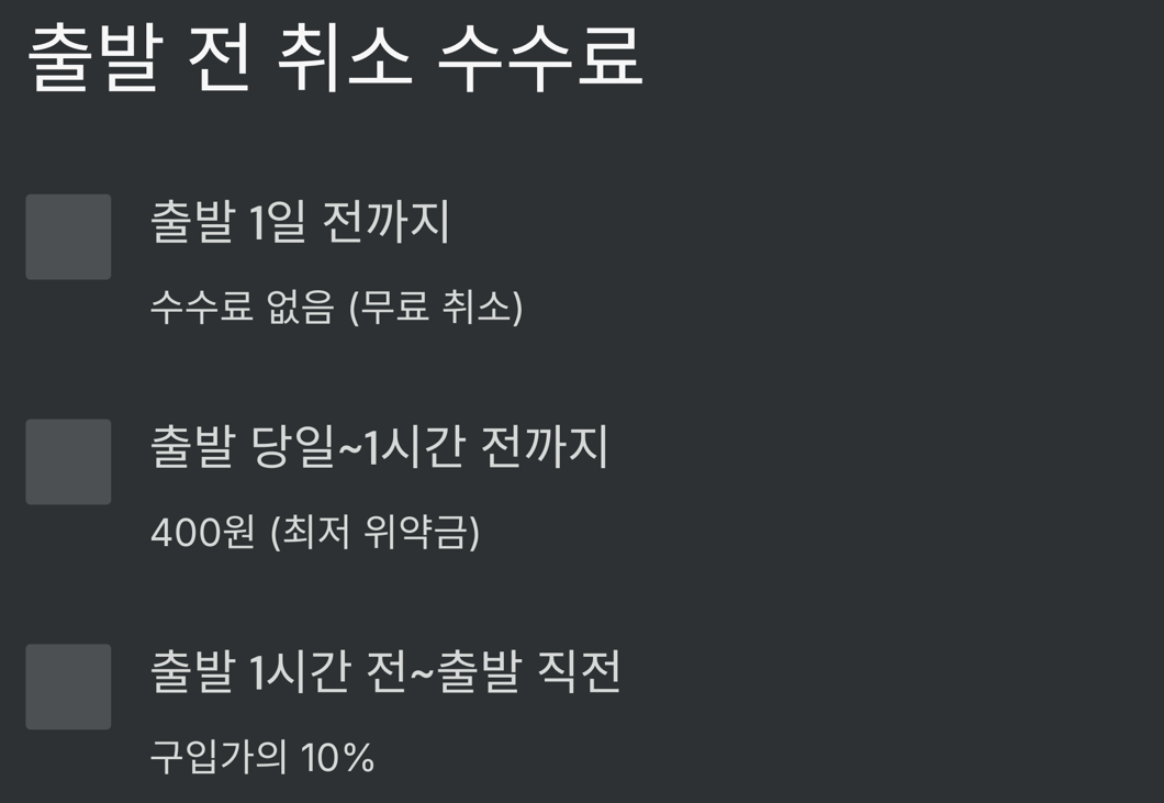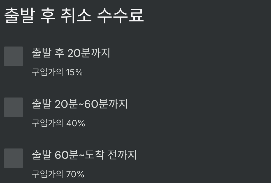 📌 TIP! 출발 직전보다 출발 후 수수료가 훨씬 높아집니다. 될 수 있으면 미리 취소하세요!